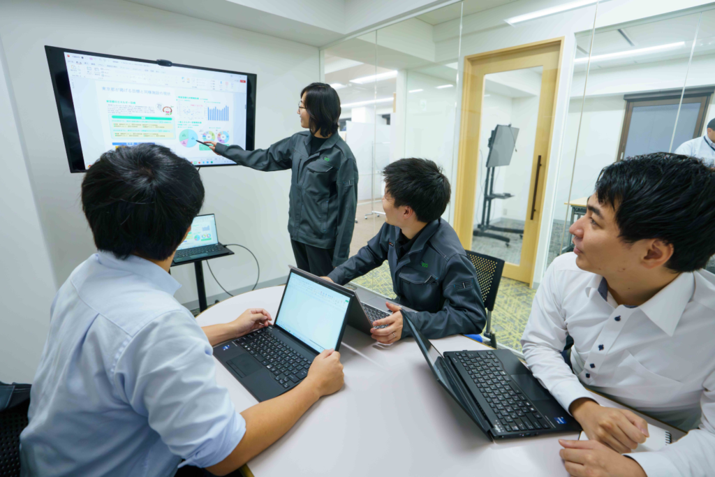 まずは、お客様のもとに訪問して挨拶。現場調査をして「どういう補助金が使えるか」「設備を変えたらどのくらい省エネになるか」という試算。そして、それらをまとめてお客様に提案資料を作成するといったことから始まります。